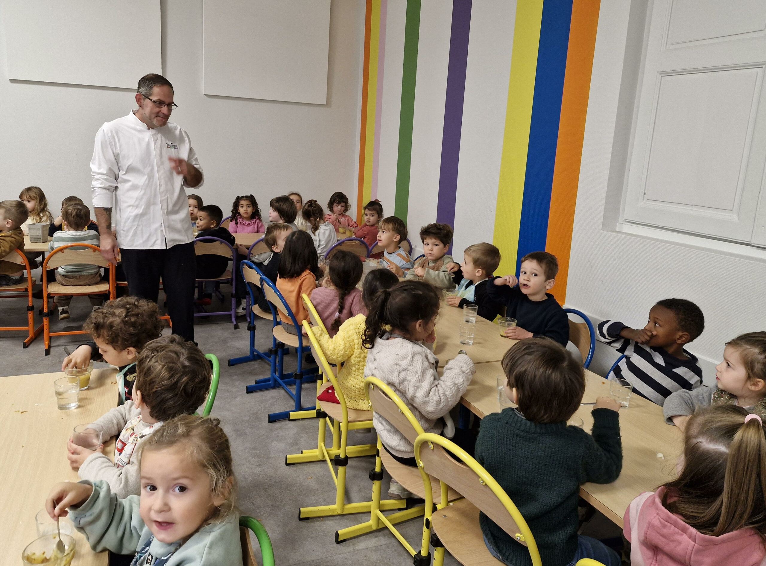 C’est un moment de pause, de convivialité, de découverte, d’apprentissages. On y veille à la santé, à l’initiation au goût, à la réduction des emballages individuels, au tri des déchets et à l’esprit de partage. Il est en cohérence avec la démarche éco-école de l’établissement.